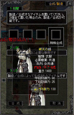 この後ますらおさんが破天鎧の書を拾ったというので安く譲ってもらい合成しましたが・・・・